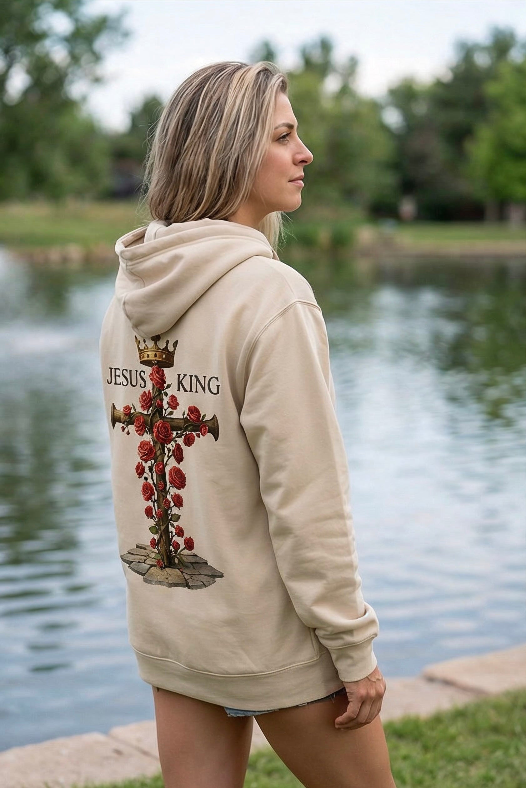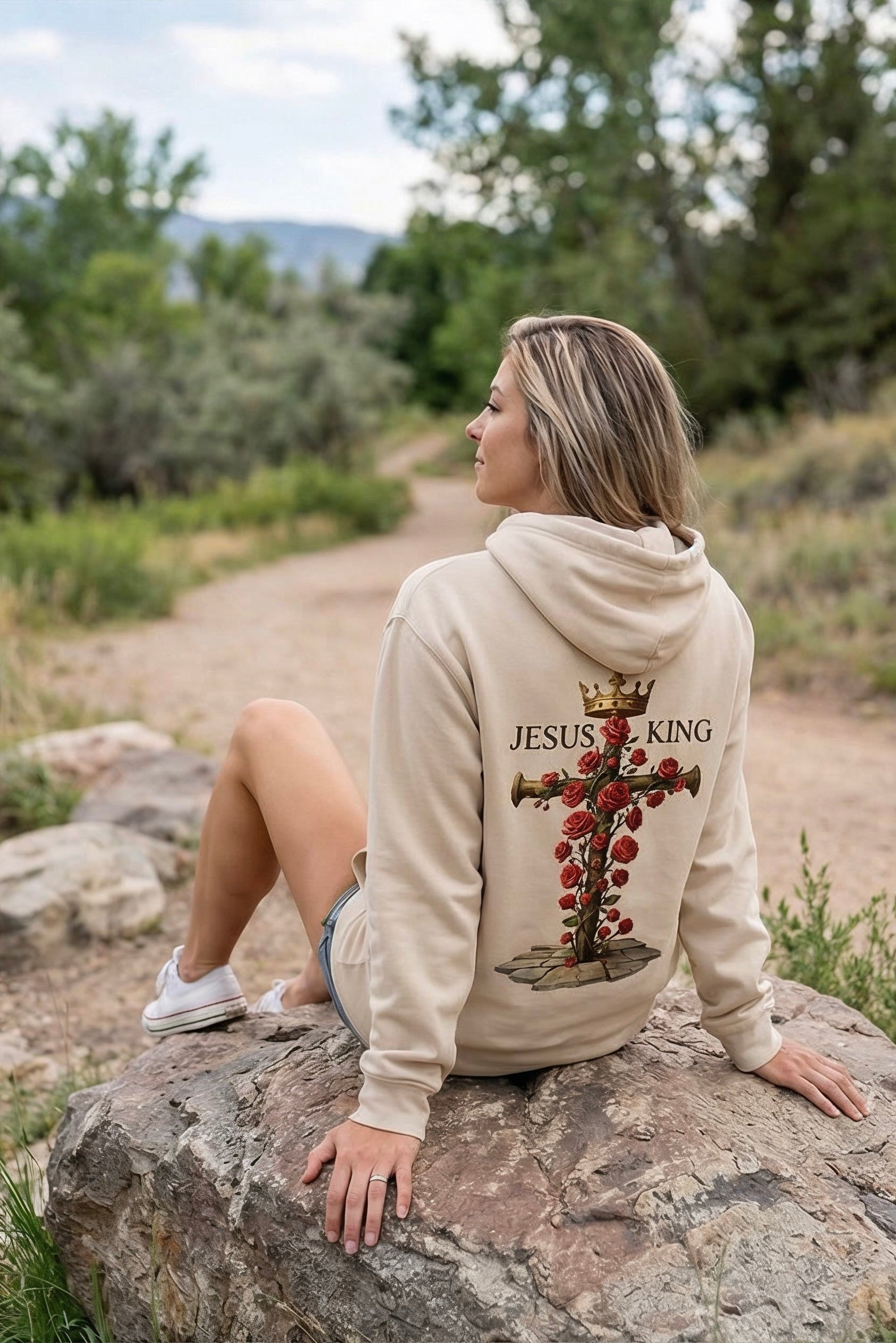 The Jesus Is King hoodie is more than apparel — it’s allegiance. Designed for those who walk confidently under the authority of Christ, this piece declares the truth that never fades: He reigns above every name.
